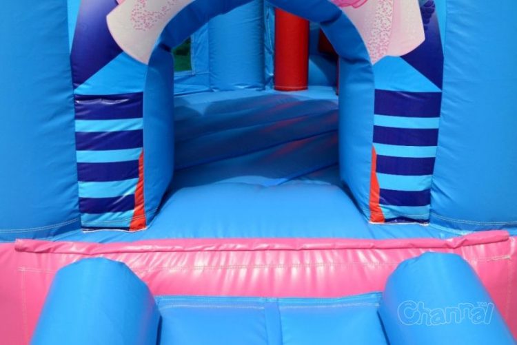 Girls, ever dream about moving to a princess castle one day, now your dream can be came true with Channal’s pink and blue beautiful princess castle bounce house with slide. This princess inflatable combo features a large bouncy castle with a fun slide, particularly fit for any Disney princess parties and other girls fun activities and events.