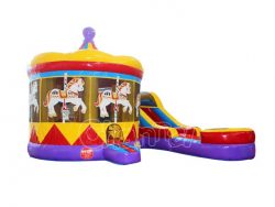 This carousel water bounce house combo is consist of a carousel bounce house and an inflatable water slide with pool. When kids jump in the bouncy house, it’s just like horse galloping. They’ll have a huge blast of playing in there.