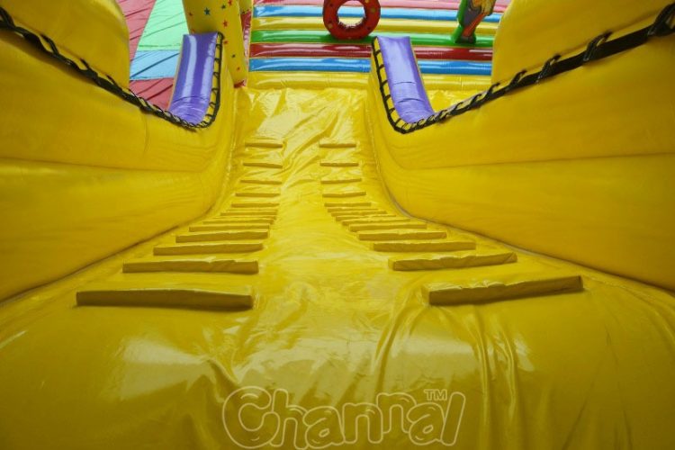 Try our 33 feet high circus clowns castle theme inflatable slide, the slide has a front bouncer with high quality netting and a hole obstacle. This slide can be used for circus big top activities or parties.