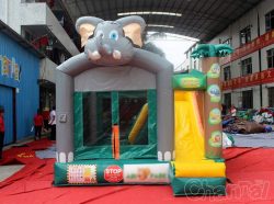 Our commercial jungle elephant inflatable combo with outside slide is a great choice to add into your party rental stock for whatever next event of kids, like back to school fun day event. Kids will not only be attracted by this elephant jungle theme, but also have fun jumping and sliding. This slide combo comes with an inflatable basketball hoop game and also a business card holder. You may also be interested by our another elephant combo.