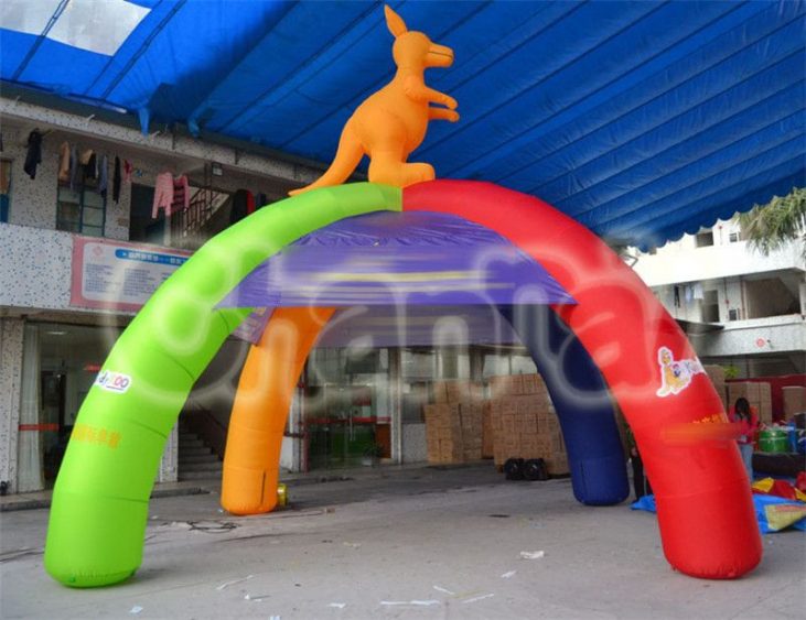 Looking for an easy pop up inflatable tent for your next event? Here is the blow up tent with an inflatable kangaroo sitting on the top. Plus the 4 different color inflatable column poles, your event is guaranteed to be a real hit.