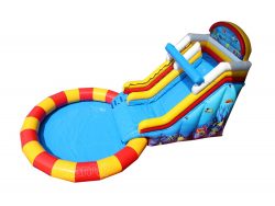 What are you looking for? You can find Nemo here. This 20 ft finding Nemo movie theme inflatable water slide is right here for solving your problem about how to have fun in hot summer days. The conspicuous part is the large and deep circular swimming pool. Just throw your body into the pool from the water slide, and enjoy the fun of water.