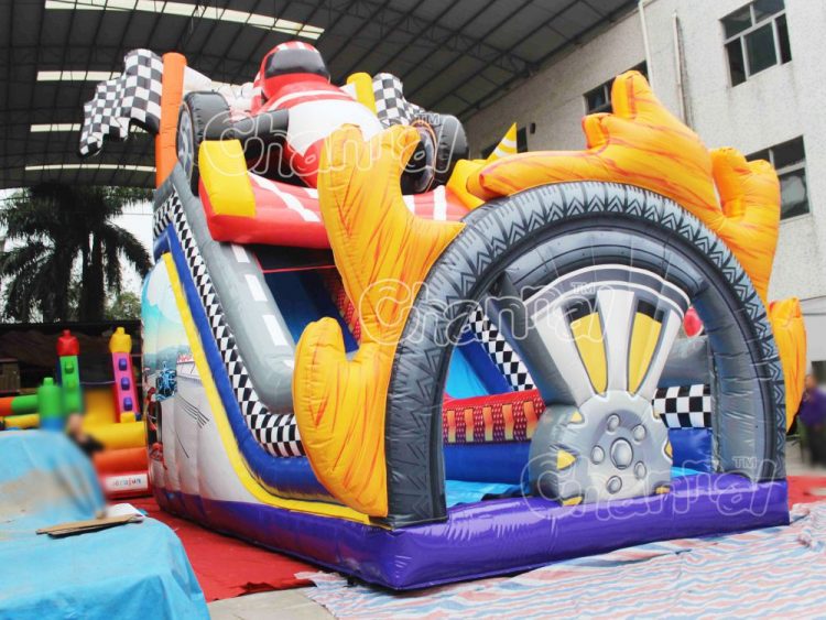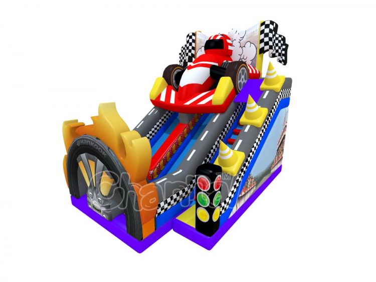 Kids will unquestionably love riding this race car inflatable slide, it’s just like driving a real single-seater car.