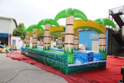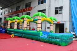Palm tree theme double lanes inflatable slip and slide with water pool for sale.