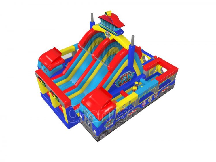 Take a ride on this giant paw patrol bus inflatable obstacle course, it’s extremely joyful to join the paw patrol team for kids, am I right? This course is able to be organized in two ways after blown up, just shown in above pictures.
