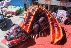 This is a special purple dinosaur or dragon theme inflatable slide, this product has two curved lands, one slide’s entry is in the dinosaur’s mouth, and the other one is from the tail. This may be the coolest inflatable slide a kid can get.