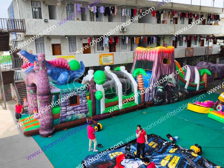 T. Rex inflatable obstacle course for sale.